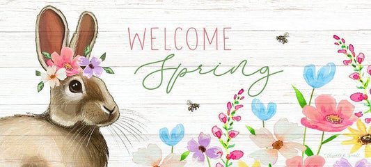 Welcome Spring White Modern Wood Framed Art Print with Double Matting by Tyndall, Elizabeth