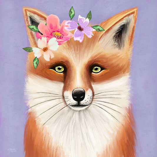Purple Fox White Modern Wood Framed Art Print with Double Matting by Tyndall, Elizabeth