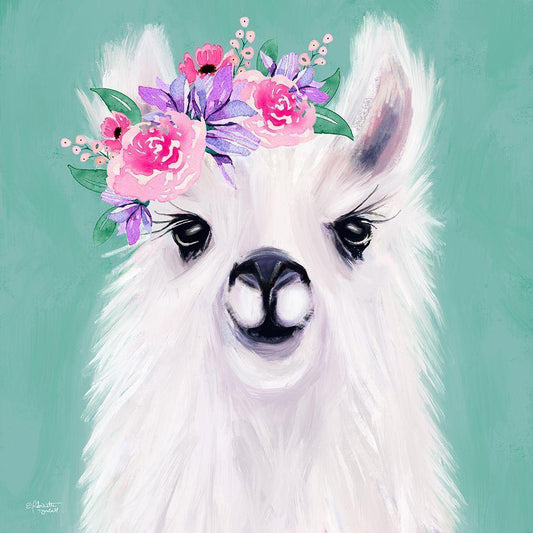 Green Llama White Modern Wood Framed Art Print with Double Matting by Tyndall, Elizabeth