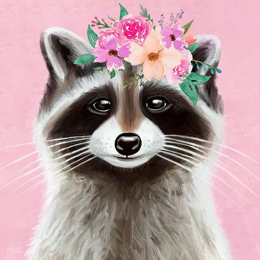Pink Raccoon White Modern Wood Framed Art Print with Double Matting by Tyndall, Elizabeth