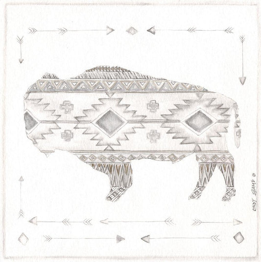 Patterned Bison White Modern Wood Framed Art Print with Double Matting by Shamp, Cindy