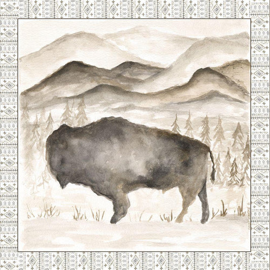 Bison w/ Border White Modern Wood Framed Art Print with Double Matting by Shamp, Cindy