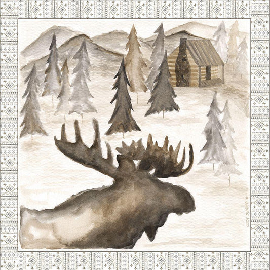Moose w/ Border White Modern Wood Framed Art Print with Double Matting by Shamp, Cindy
