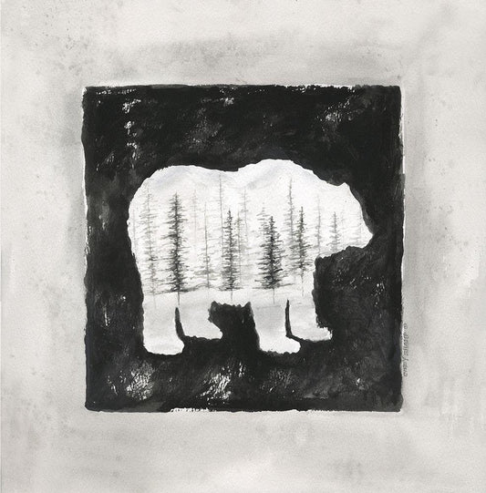 Bear Silhouette White Modern Wood Framed Art Print with Double Matting by Shamp, Cindy