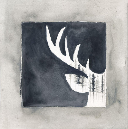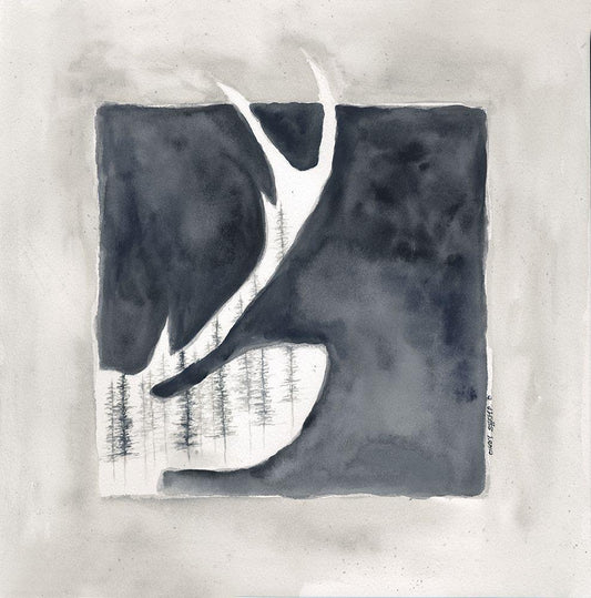 Moose Antler White Modern Wood Framed Art Print with Double Matting by Shamp, Cindy