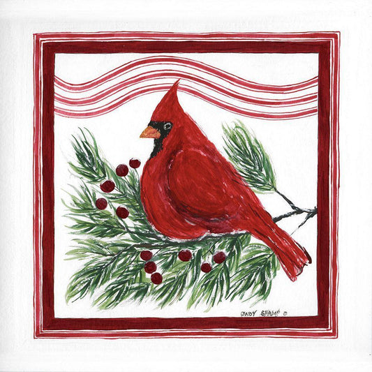 Christmas Cardinal II White Modern Wood Framed Art Print with Double Matting by Shamp, Cindy