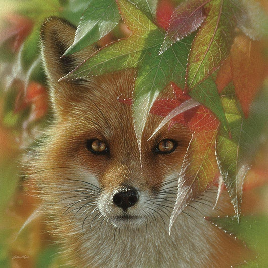 Autumn Red Fox White Modern Wood Framed Art Print with Double Matting by Bogle, Collin