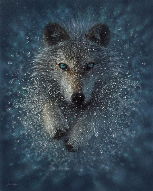 Running Wolf White Modern Wood Framed Art Print with Double Matting by Bogle, Collin