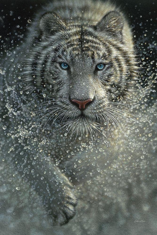 White Tiger - Wild Intentions - BandW White Modern Wood Framed Art Print with Double Matting by Bogle, Collin