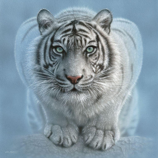 White Tiger - Wild Intentions Square White Modern Wood Framed Art Print with Double Matting by Bogle, Collin