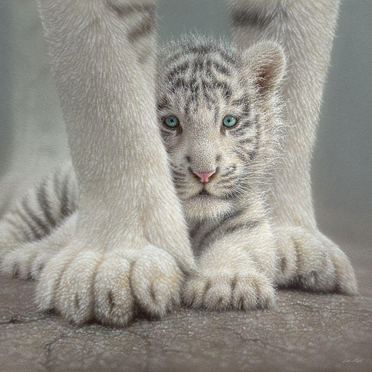 White Tiger Cub - Sheltered White Modern Wood Framed Art Print with Double Matting by Bogle, Collin