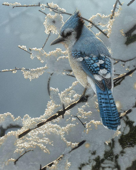 Blue Jay - On the Fence White Modern Wood Framed Art Print with Double Matting by Bogle, Collin