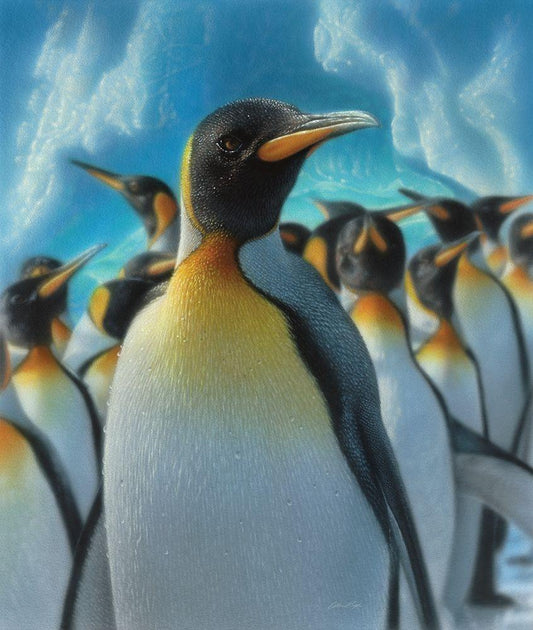 Penguin Paradise - Square White Modern Wood Framed Art Print with Double Matting by Bogle, Collin