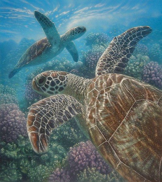 Sea Turtles - Turtle Bay White Modern Wood Framed Art Print with Double Matting by Bogle, Collin