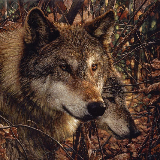 Autumn Wolves White Modern Wood Framed Art Print with Double Matting by Bogle, Collin