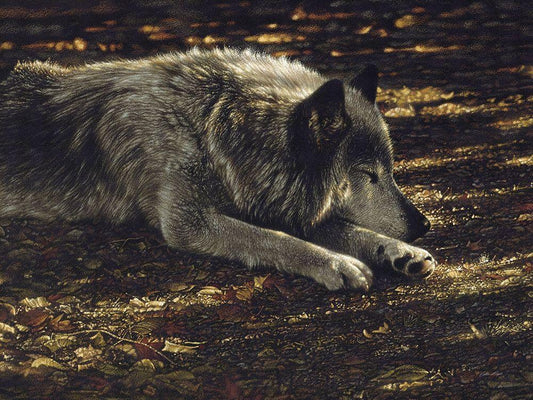 Resting Wolf White Modern Wood Framed Art Print with Double Matting by Bogle, Collin