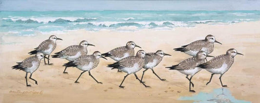 Seagulls and Sand White Modern Wood Framed Art Print with Double Matting by Phillips, Anita