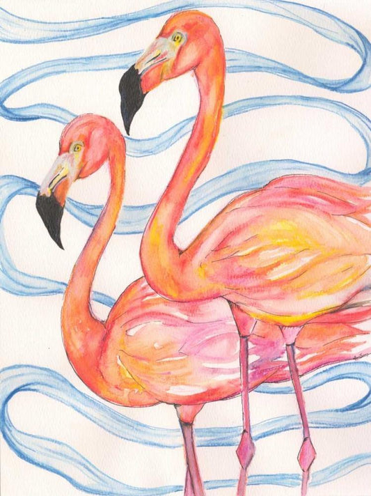 Pink Flamingo White Modern Wood Framed Art Print with Double Matting by Seay, Anne