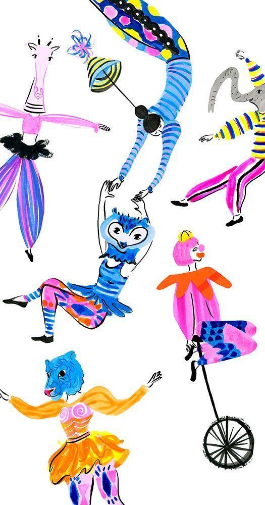 Circus Fun Collection I White Modern Wood Framed Art Print with Double Matting by Blanckslate