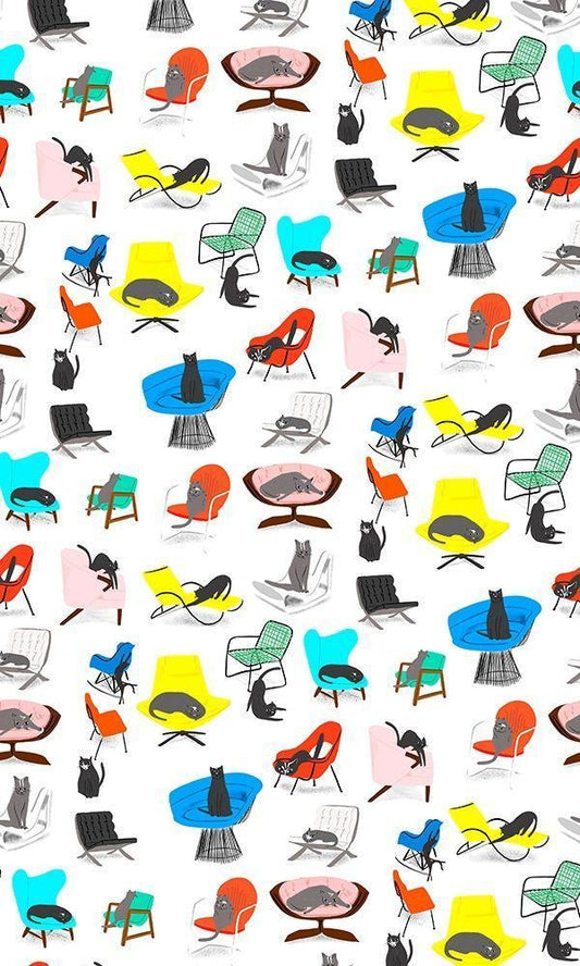 Mod Cats Collection C White Modern Wood Framed Art Print with Double Matting by Blanckslate