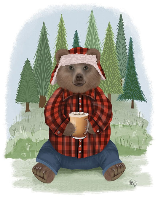 Lumberjack Bear Latte White Modern Wood Framed Art Print with Double Matting by Fab Funky