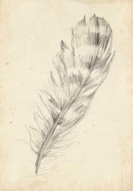 Feather Sketch II White Modern Wood Framed Art Print with Double Matting by Harper, Ethan