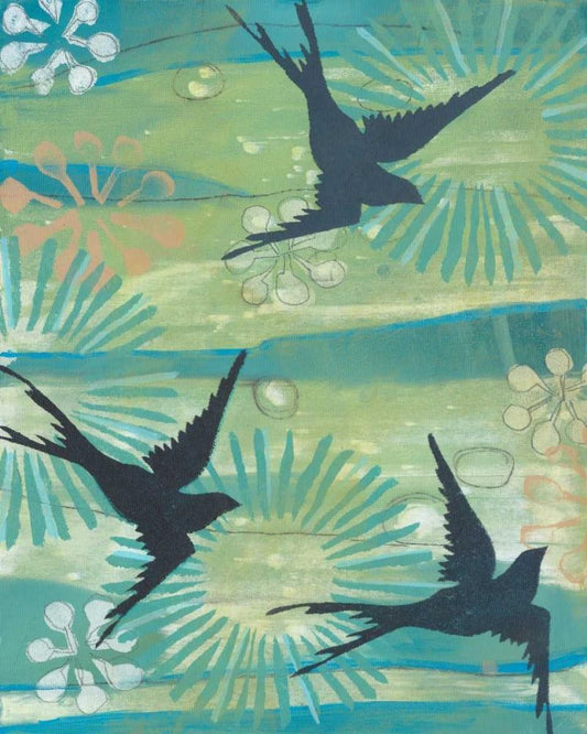 Tropical Monotype II White Modern Wood Framed Art Print with Double Matting by Roth, Carolyn