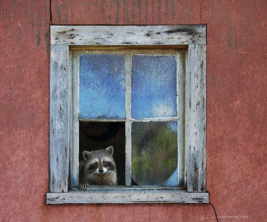 Raccoon Window White Modern Wood Framed Art Print with Double Matting by Vest, Chris