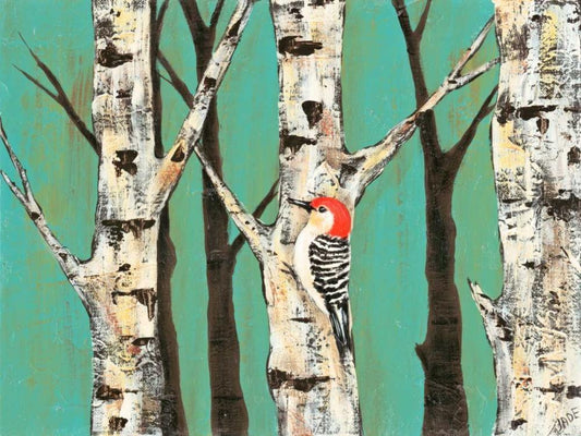 Birch Grove on Teal I White Modern Wood Framed Art Print with Double Matting by Reynolds, Jade