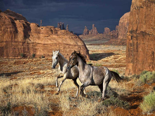 Blazing Herd II White Modern Wood Framed Art Print with Double Matting by Drost, David