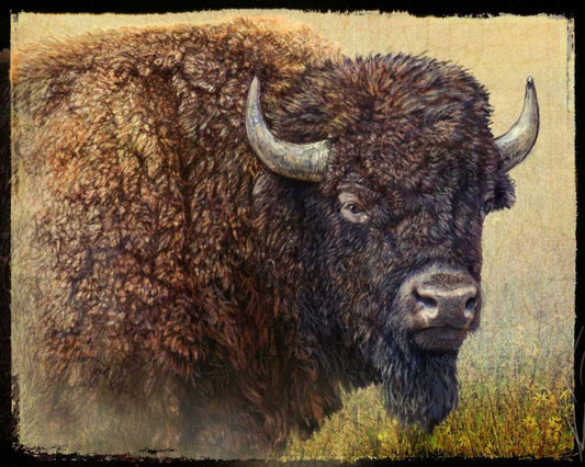 Bison Portrait I White Modern Wood Framed Art Print with Double Matting by Vest, Chris