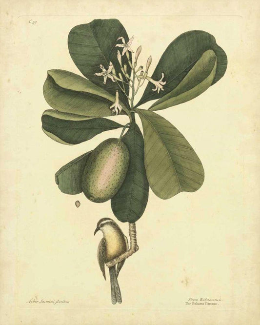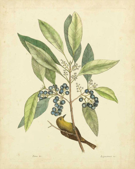 Catesby Bird and Botanical V White Modern Wood Framed Art Print with Double Matting by Catesby, Mark
