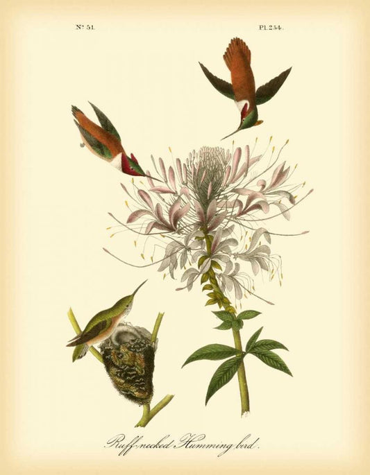 Ruff-neck Hummingbird White Modern Wood Framed Art Print with Double Matting by Audubon, John James