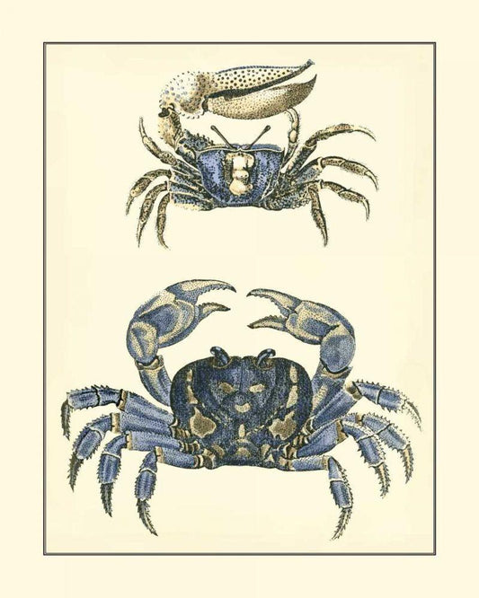 Antique Blue Crabs II White Modern Wood Framed Art Print with Double Matting by Vision Studio