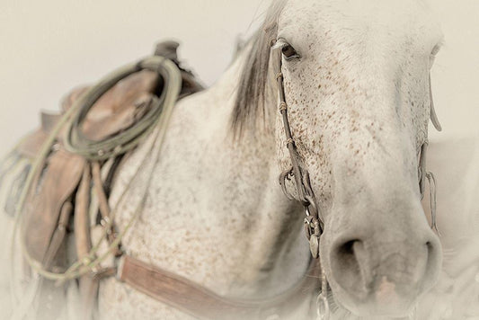 Weathered Equestrian I White Modern Wood Framed Art Print with Double Matting by Harper, Ethan