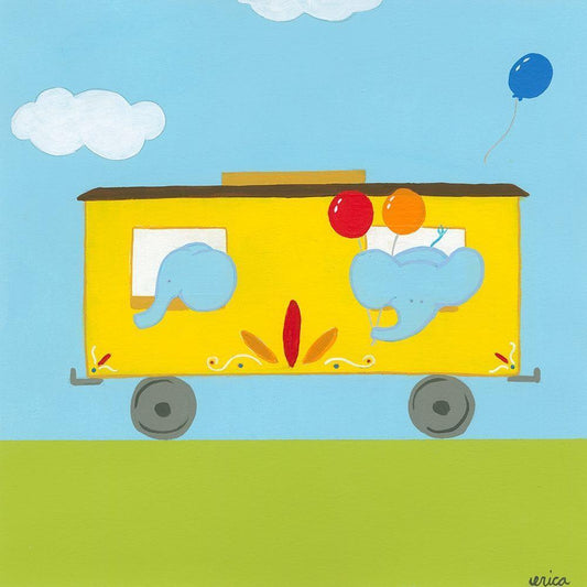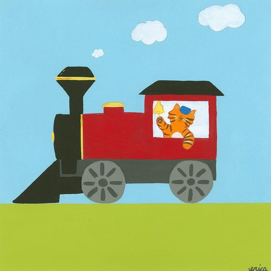 Circus Train I White Modern Wood Framed Art Print with Double Matting by Vess, June Erica