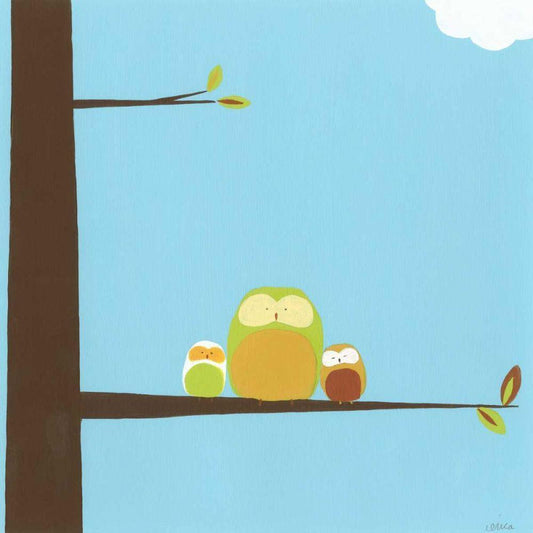 Tree-top Owls III White Modern Wood Framed Art Print with Double Matting by Vess, June Erica