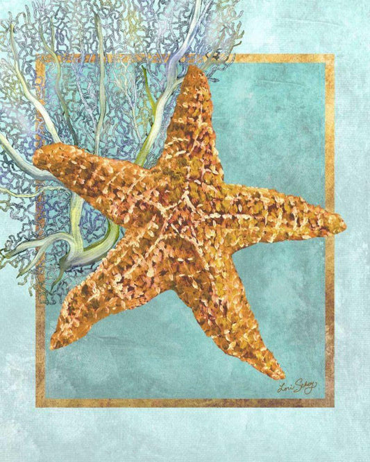 Starfish and Coral White Modern Wood Framed Art Print with Double Matting by Schory, Lori
