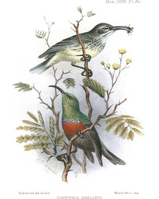 Birds in Nature I White Modern Wood Framed Art Print with Double Matting by Keulemans, J.C.