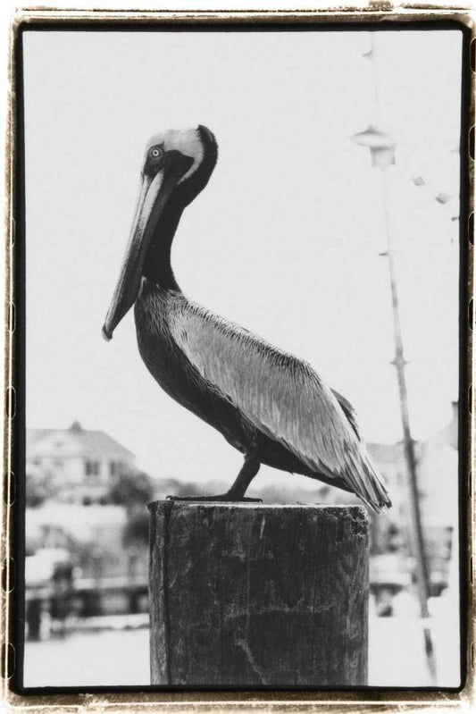 Pelican Perch White Modern Wood Framed Art Print with Double Matting by DeNardo, Laura