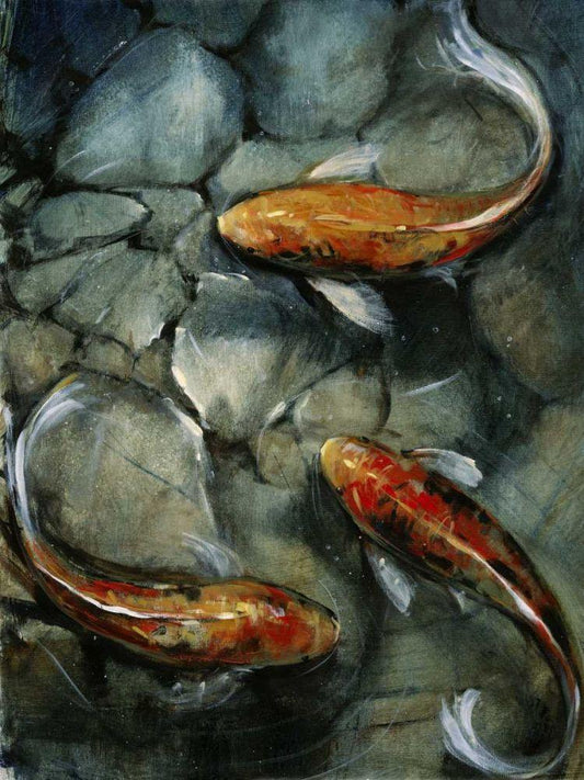 Tres Koi I White Modern Wood Framed Art Print with Double Matting by OToole, Tim