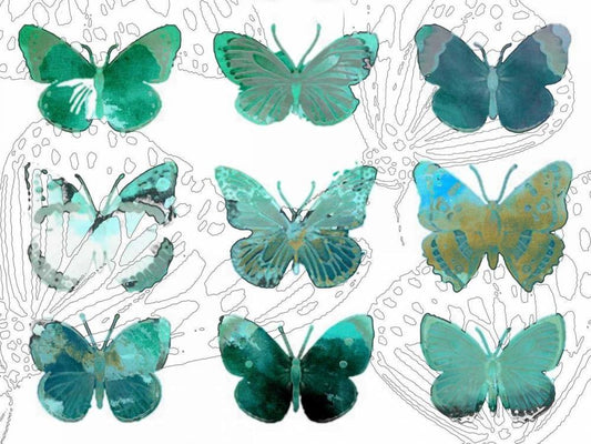 Butterflies on Green White Modern Wood Framed Art Print with Double Matting by Jasper, Sisa