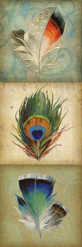 2-Up Feather Triptych I White Modern Wood Framed Art Print with Double Matting by Goldberger, Jennifer