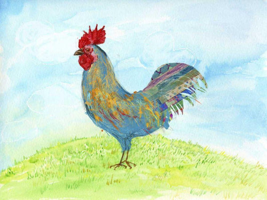 Meadow Rooster White Modern Wood Framed Art Print with Double Matting by Blixt, Ingrid