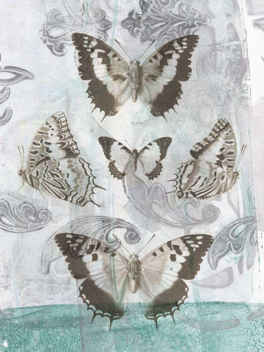 Butterflies and Filigree II White Modern Wood Framed Art Print with Double Matting by Goldberger, Jennifer