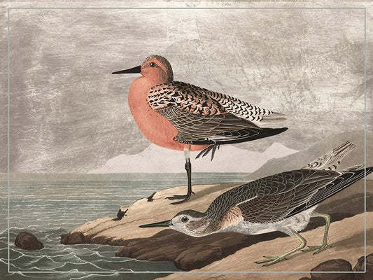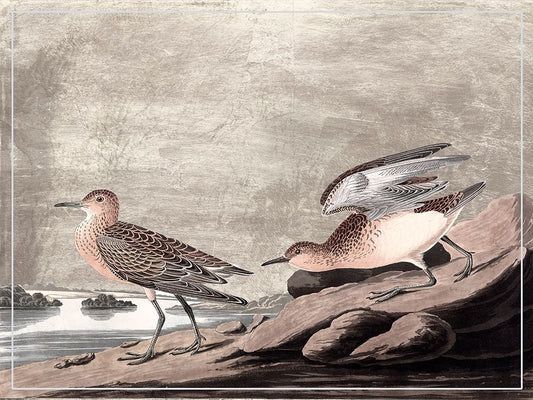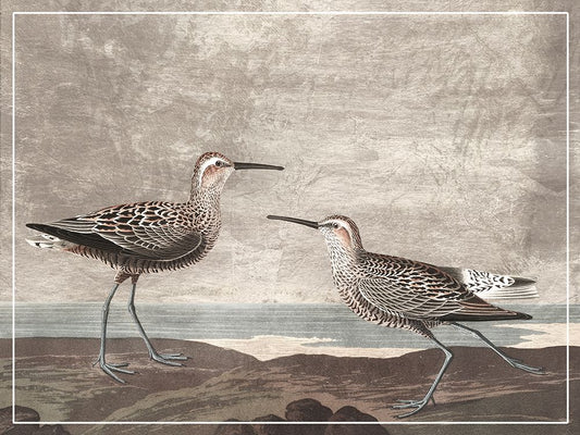 Gilded Sandpipers I White Modern Wood Framed Art Print with Double Matting by Audubon, John James