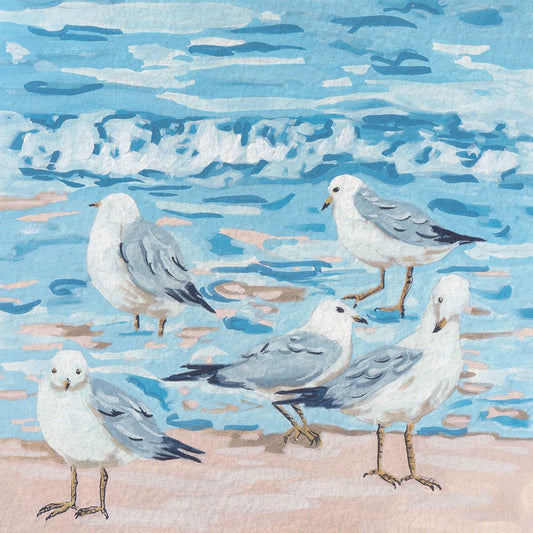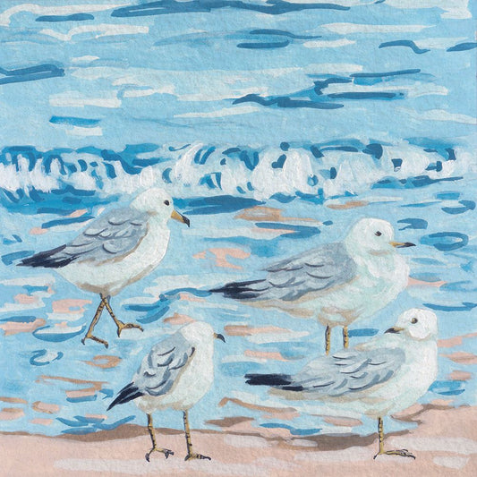 Seagull Birds II White Modern Wood Framed Art Print with Double Matting by Wang, Melissa