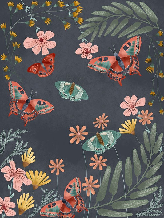 Butterfly Night II White Modern Wood Framed Art Print with Double Matting by Moore, Regina