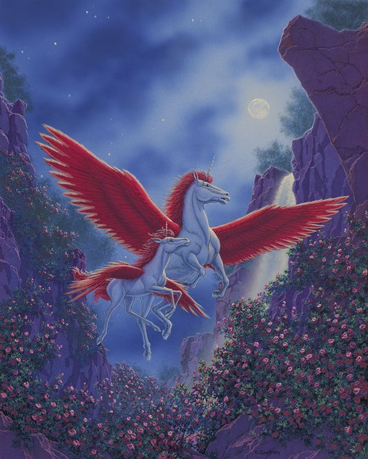 Mother Unicorn And Child White Modern Wood Framed Art Print with Double Matting by Courtney, Richard