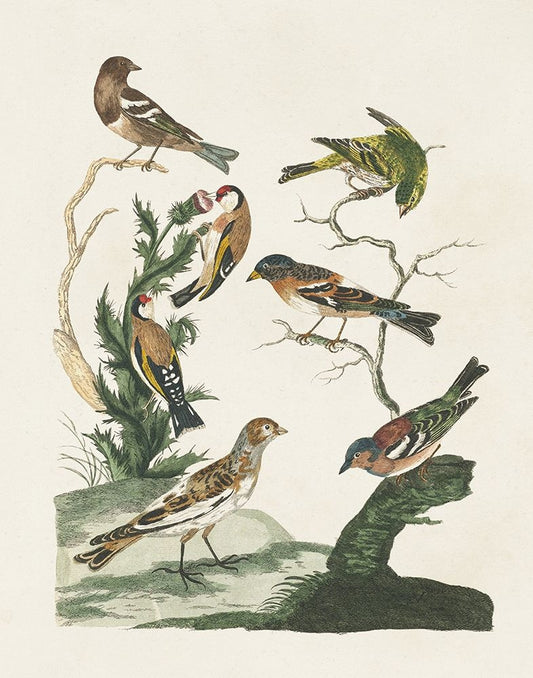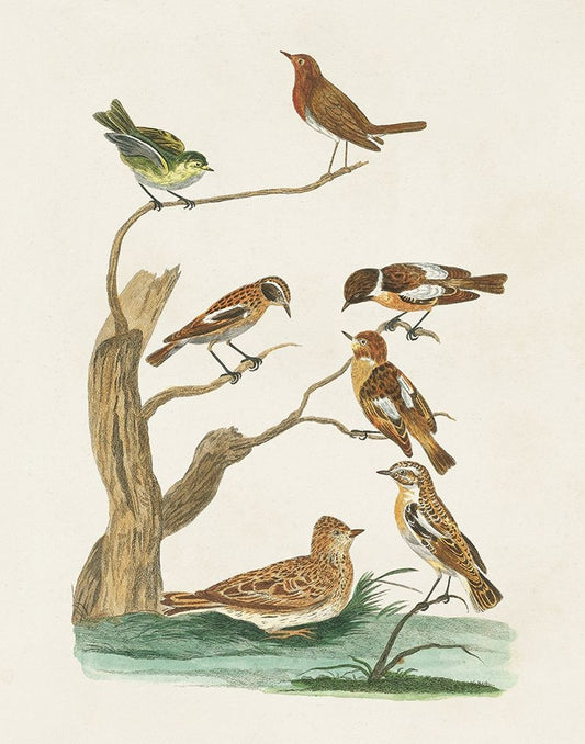 Antique Birds in Nature I White Modern Wood Framed Art Print with Double Matting by Vision Studio